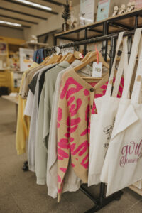 Auf den vorderen 50qm findest du Geschenkideen, handgemachte Unikate, Schmuck, Accessoires sowie individuell bedruckte Hoodies und Shirts. Unser Sortiment wechselt regelmäßig – es gibt immer Neues zu entdecken!